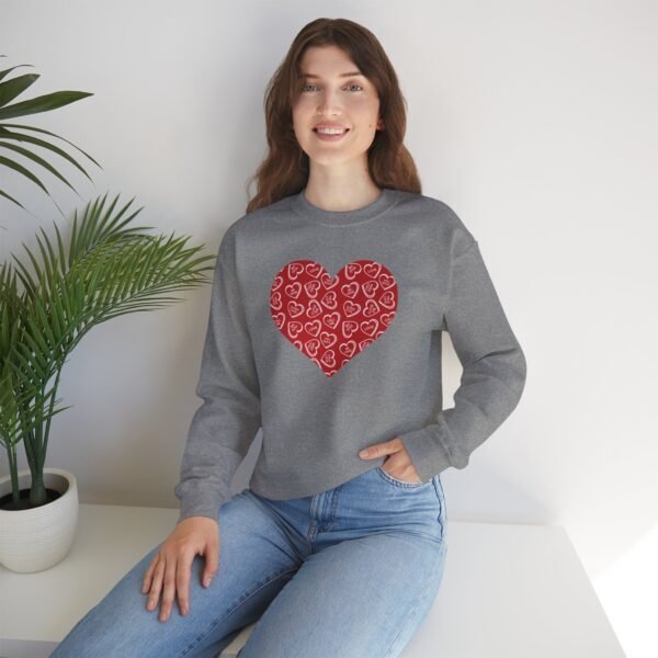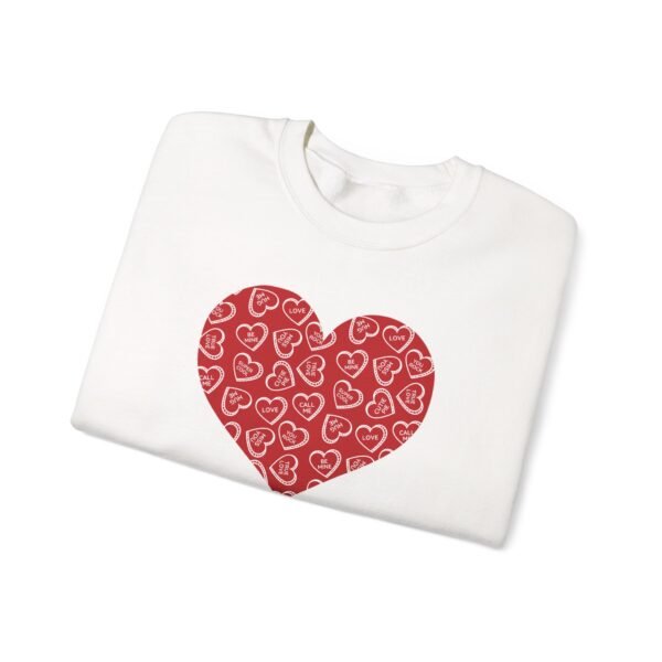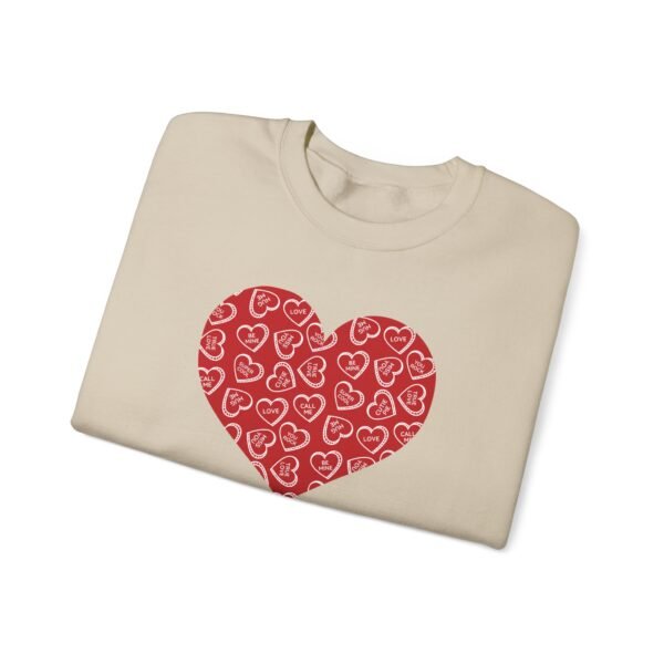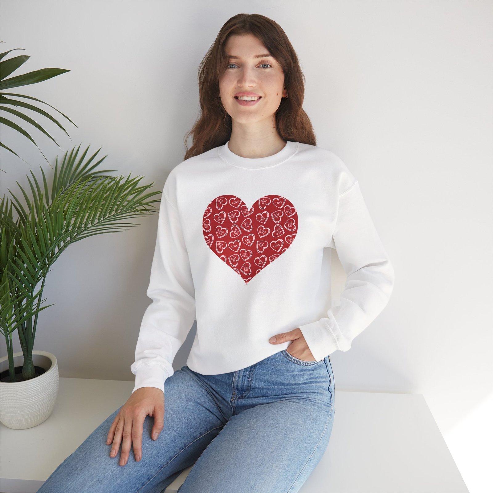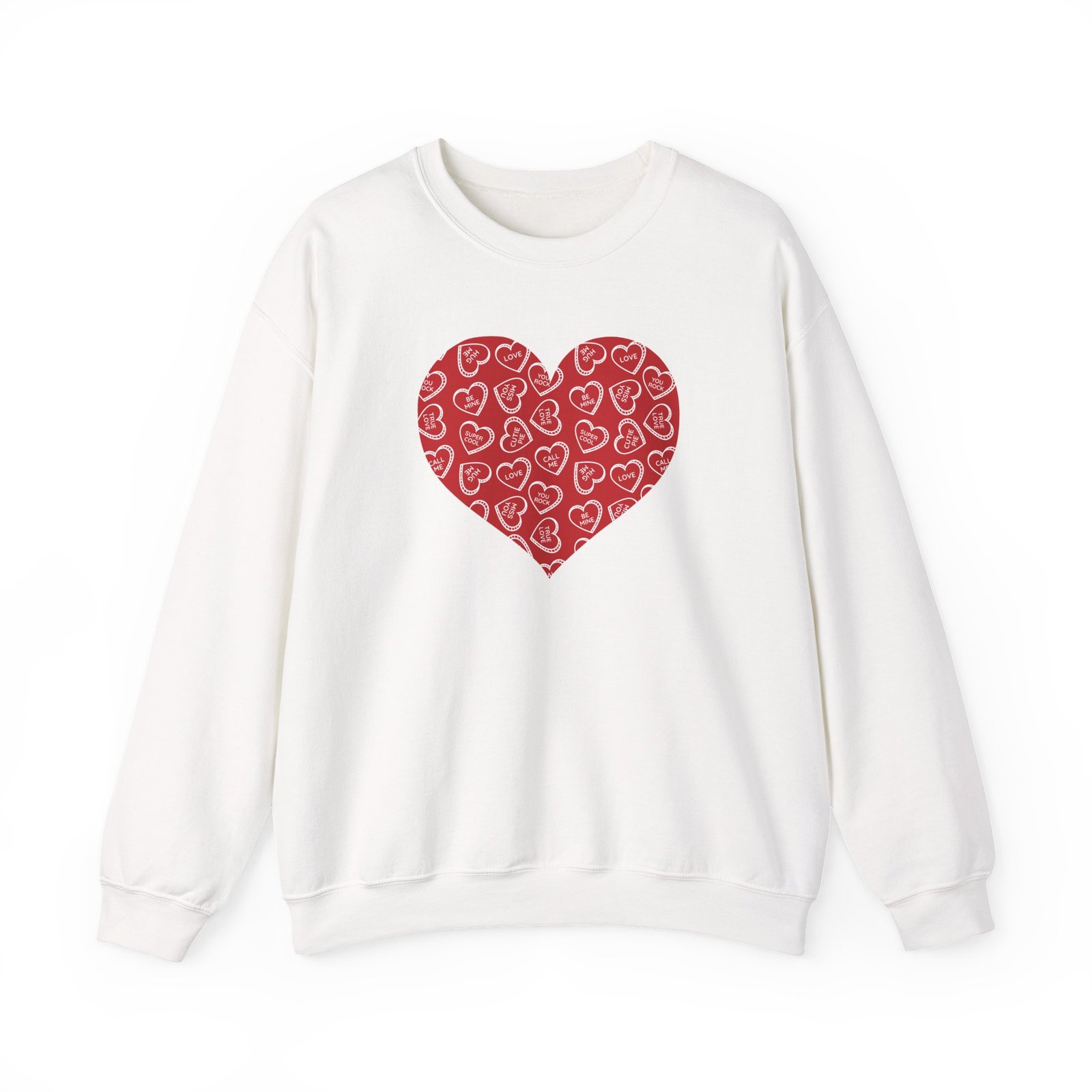 This cozy crewneck brings a quiet, playful energy to everyday wear. Featuring a soft printed Retro Candy Heart design across the chest AND a Small Heart on each SLEEVE! This minimal aesthetic adds just the right amount of charm—subtle, optimistic, and easy to style. The look is clean and modern, designed to feel sweet without being loud or overdone like some glitter designs.